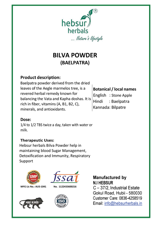 • Bael Patra powder may help in maintaining a healthy digestive system & metabolism