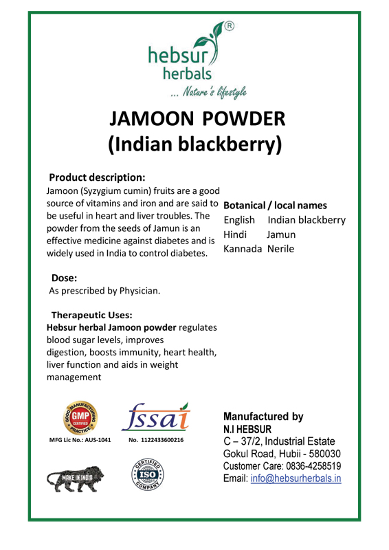 • Made from 100% Dried Seeds of Jamun Fruit. Contains no added color, flavor or preservatives