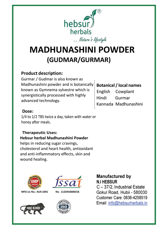 Gurmar / Gudmar is also known as Madhunashini powder and is botanically known as Gymnema sylvestre which is synergistically processed with highly advanced technology.