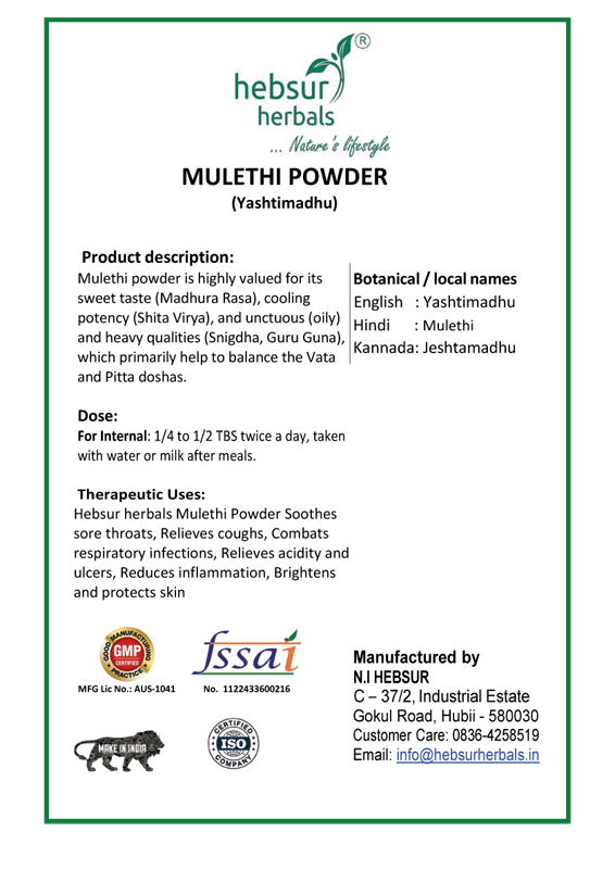 Hebsur herbals have identified the finest herbs from traditional Indian Ayurveda to promote a better lifestyle to all of us. Mulethi Powders is popularly referred as “fruit for the skin” as it has a naturally mild pH, that helps gently clean the skin without stripping it of natural oils. Comes 225 gm powder. Mulethi has active compounds glycyrrhizin and carbenoxolone that are known to relieve constipation, stomach discomfort, heartburn, acidity, and other stomach problems. It also acts as a mild laxative, playing an effective role in stimulating bowel movements. Also helpful for Constant coughing, sneezing and dry throat are some of the health conditions that come along with smog and pollution.